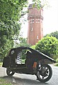 The next day I used the Quasar for the six mile suburban spin over to Barnes where I showed it to my optician, Paul, for the first time. He's a keen biker who's owned all kinds of motorcycles from Harleys to the ill-fated Bimota Tesi stroker and currently has a modern Guzzi and a classic Commando, but he wisely commutes on a Mk1 Tmax, complete with Tucano lap cover and bolt-on screen extension. Of all the bikers who've seen my Quasar, he's the only one who's actually expressed a serious interest in riding it! I'll have to find a suitably spacious place for him to have a go in it. (Not many disused airfields in South West London, unfortunately!)