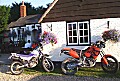 Anyway, we were able to leave the van at the venue while we explored some of the backroads and local lanes in the evening. We found our way to the top of the famous and spectacular Butser Hill via a nearby green lane and I rode down the easy way and back up the hard way while Elspeth had a rest and took a pic of me riding up the newly-widened steep bit at the end. The KTM stormed up it with no problem at all. I must say I actually find the 640 more relaxing to ride on the trail than the 450EXC (currently in dry dock due to a distinct lack of compression)