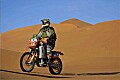 Well, I survived the 5000kms of the Libya Desert Challenge with bike and body both intact. It was a hell of an experience; along with the expected sun there was also some unexpected rain and mud plus chilling winds during the day and freezing nights in the desert bivouacs. Despite all my good intentions to stay shiny side up I still managed three excursions over the handlebars, twice landing on my head, once with the bike on top of me. Thanks to all my body armour and my new Asterisk knee braces I escaped with nothing worse than an IV drip at the end of the longest day and a sunburnt back and nose. I got off lightly compared to my fellow Brit competitors; Tom Beckett crashed heavily and knackered his shoulder on the first day but just gobbled painkillers and carried on regardless to come a close second overall, ahead of all the cars. Elvis Howard crashed out half way through but came back chomping painkillers to ride the last two days. Kareem ‘squeaky clean’ Hussain was going well till his Honda XR650’s rear suspension collapsed irreparably two days from the end.