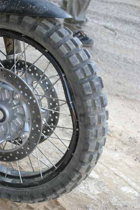 onto the GS that Lachlan Harris had been riding while a spare wheel was fitted