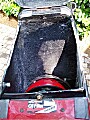 Yesterday (Wednesday), before leaving Godalming, I decided to make room for my Schubert helmet in the Quasar’s rear compartment. The Schubert must be the biggest helmet currently on sale – it’s really, really wide and deep. The original compartment itself is nevertheless wide enough to hold it, but as most of you will know, the problem is the narrowness of the opening. Call me a brute if you like, but I just took a hacksaw to the top of the opening, thereby making it the crucial inch or so wider in the middle to allow the hinge of the Schubert to squeeze through. My only concern is that the compartment might be slightly less waterproof than it was before. I should probably add some sort of rubber liner to the edge of the lid to make up for the missing overlap of fibreglass.
