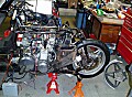 I saw the ‘South African’ Quasar for the first time, looking much tidier than I’d expexted and Mark also fired up the SEV Z1300 in his garage for my benefit, which was awesome to behold on open pipes. The wreck that I saw last autumn after its return from Oz has been transformed and it’s now very close to being rideable again – the lack of brakes being the main stumbling block. It’s a hell of an achievement just to get it running again, requiring as it did, a top end strip and complete carb rebuild and a host of electrical gizmo wizardry.
